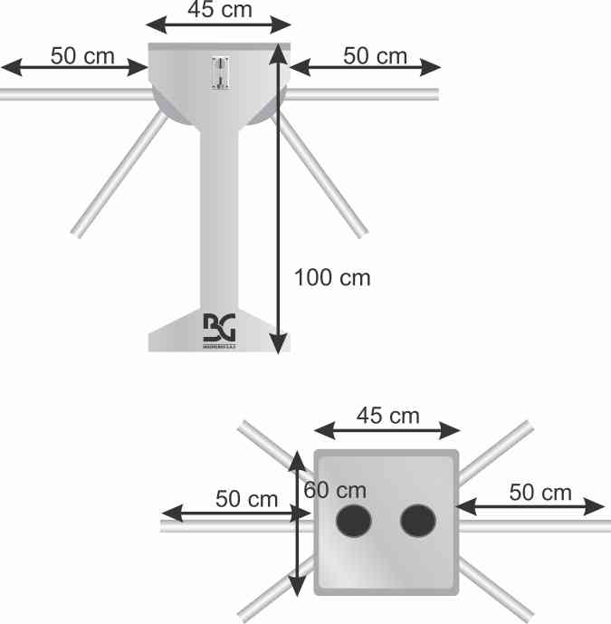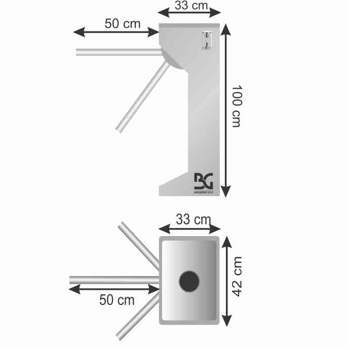 Se recomienda colocar el Torniquete BGTT-311 de forma BIDIRECCIONAL (entran y salen por el mismo lugar) con el objetivo de tener un mayor control. El equipo en su forma bidireccional es recomendado para un promedio de 800 personas por día, mayor a ello puede causar aglomeración entre la entrada y salida.