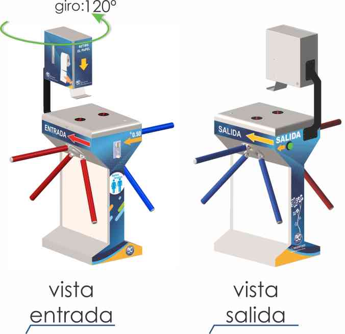 El torniquete BGTT-316 son dos equipos en uno usado para entrada y salida. El equipo NO NECESITA UNA PERSONA PEREGNE AL CUIDADO DE LA ENTRADA ya que entrega papel de forma automática.